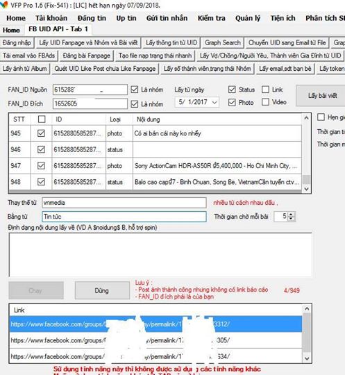 + FAN_ID Nguồn: là ID của page hay profile hoặc group cần lấy thông tin